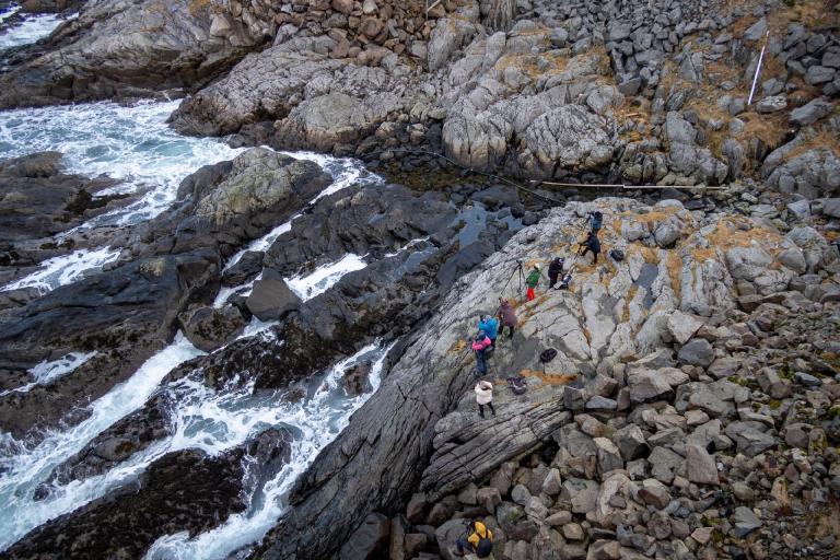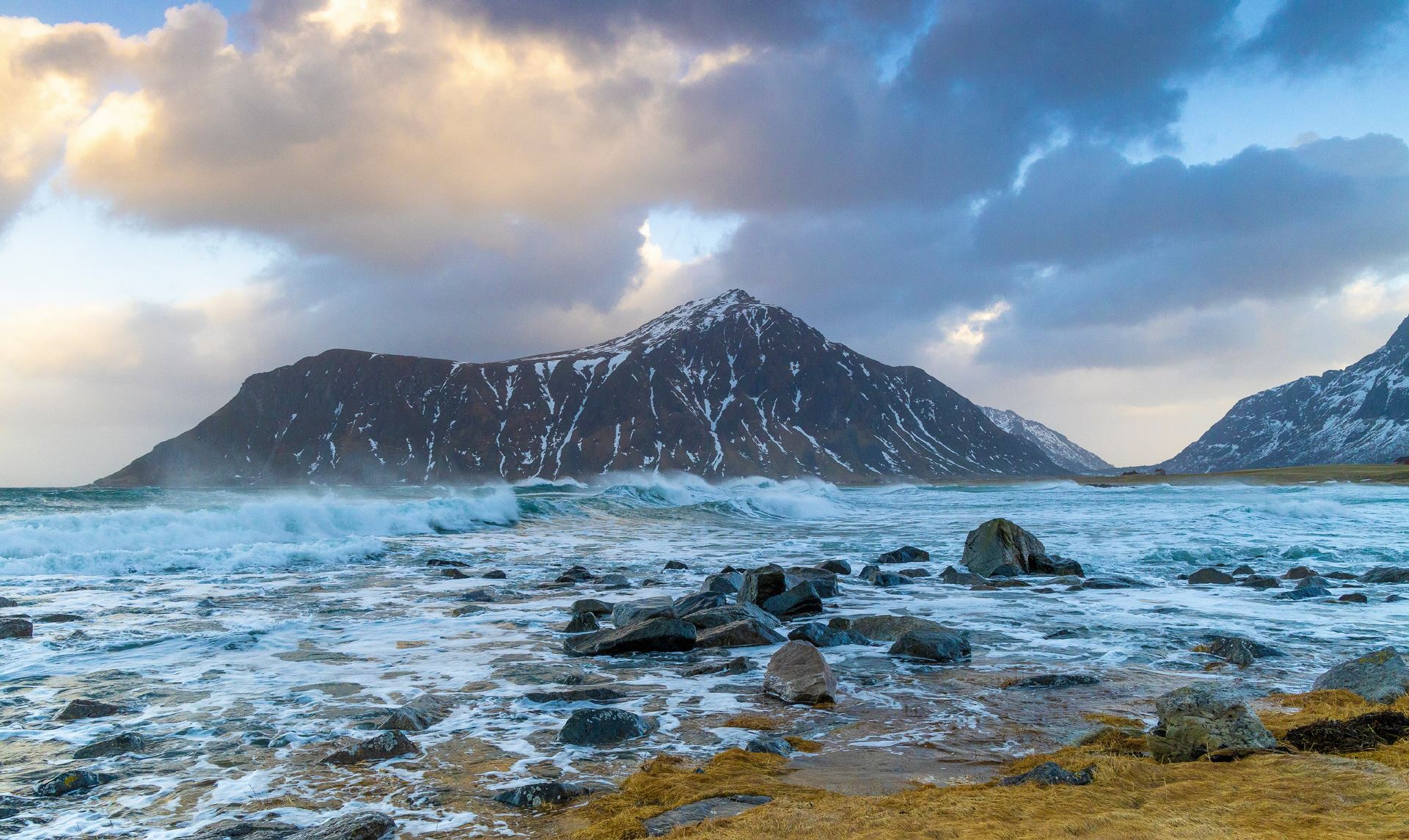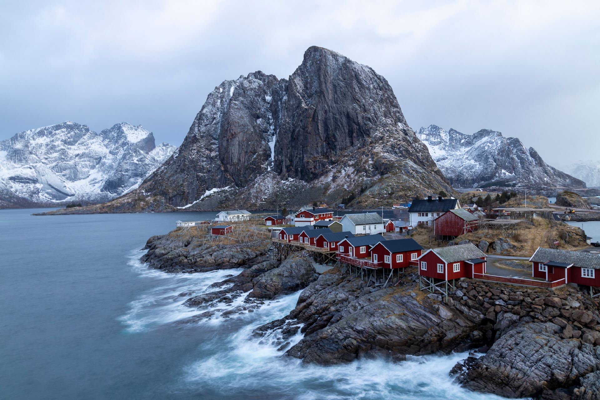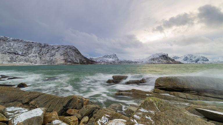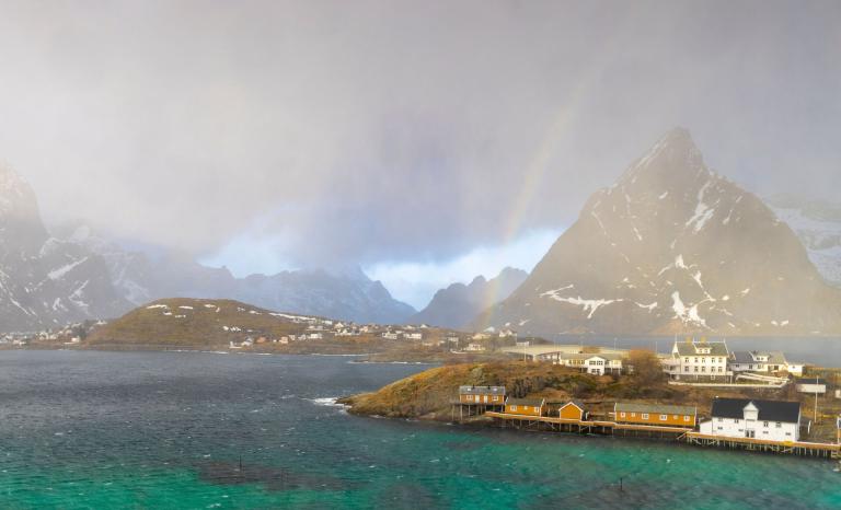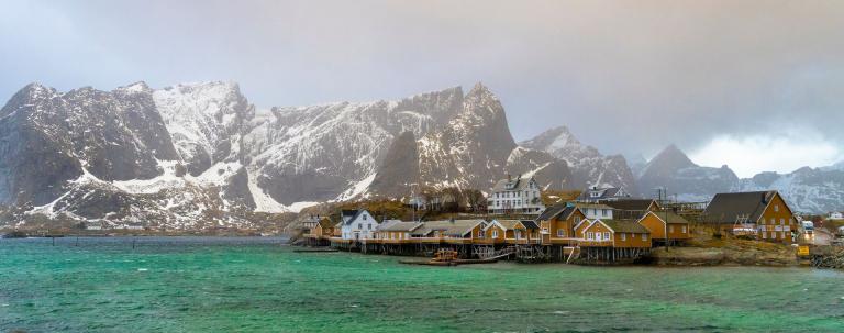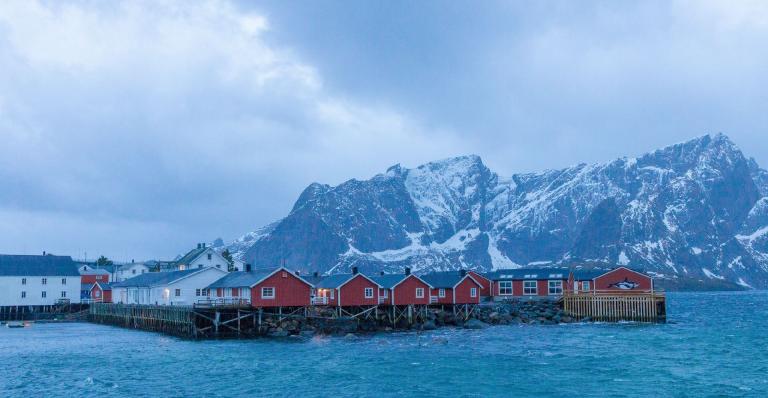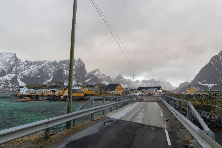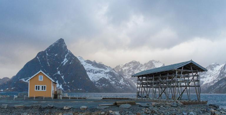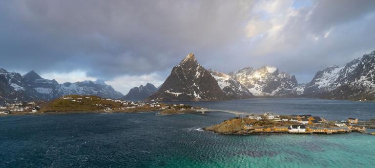 Die schroffe Küste mit den steil ins Meer abfallenden Bergen erinnert an das obere Drittel der Drei- und Viertausender der heimischen Alpen, dazwischen liegen allerdings keine sanften Almen sondern das Meer, dass in tiefen Fjorden die Inseln durchzieht und für einen unglaublichen Kontrast sorgt. In einigen Buchten findet man weiße Sandstrände und türkises Meer und im Hintergrund thronen die schroffen, schneebedeckten Berge. In den malerischen Fischerdörfern hängt der frischgefangene Dorsch zum Lufttrocknen und es scheint als wäre die Zeit stehen geblieben.