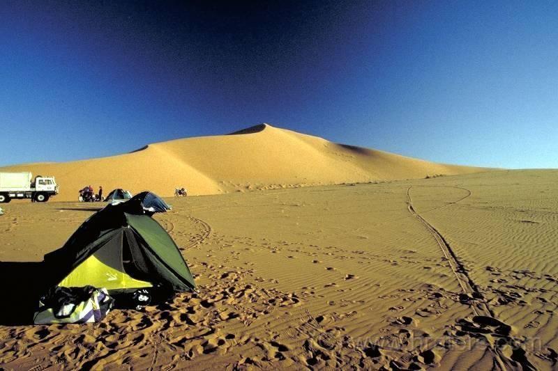 Oasen und Schotterpisten bringen uns in den großartigen Süden. Bald sind wir beim Basislager mit 32° Warmwasserbecken in der Oase Ksar Ghilane mitten in den Ausläufern des Grand Erg Oriental, des riesigsten Sanddünengebietes der nördlichen Sahara. Die nächsten Tagestouren zur Höhlenstadt Matmata, ins landschaftlich herrliche Dahargebirge, nach Chenini zum Kouskousessen bringen uns das Land richtig nahe. Über Sanddünen geht’s zum Brunnen Bir Soltane und zur Wüstenstadt Douz mit Kamelmarkt. Auch Fahrtraining und GPS-Kurs in der Umgebung der Warmwasserquellen werden auf Wunsch durchgeführt. Je nach Wetter und Wind fahren wir zum „verlorenen“ See, nur für geübte Dünenfahrer mit guter Kondition. Wer will, kann auch mal einen oder zwei Tage einfach relaxen oder eventuell mit einer Kamelkarawane zu einer ehemaligen Festung mitten in den Sanddünen schaukeln. Wir haben genug Zeit für Benzingespräche am abendlichen Lagerfeuer, und unser 6×6 Tatra hat auch genügend Bier, Wein und Limo gebunkert. Jetzt müssen wir wieder nach Norden. Auf unserem ,,Rückzug“ besichtigen wir die Touristeninsel Djerba (von hier fliegen die Teilnehmer der Flugvariante wieder nach Europa zurück) mit Töpfereien, Markt, auch die jüdische Synagoge von Chriba usw. Die Zivilisation hat uns wieder! Weiters Besichtigung der heiligen Stadt Kairouan. In unserem Hotel in Sousse amüsieren wir uns bei orientalischem Bauchtanz und gutem Essen. Dort verladen wir unsere Gepäckstücke, springen zum Abschied noch in den Pool, abends in die Disco, dann am Freitag Morgens um 6 Uhr geht‘s ab zur Fähre nach Tunis La Goulette. Ankunft in Genua am Samstag Mittags, wir verabschieden uns von Freunden.